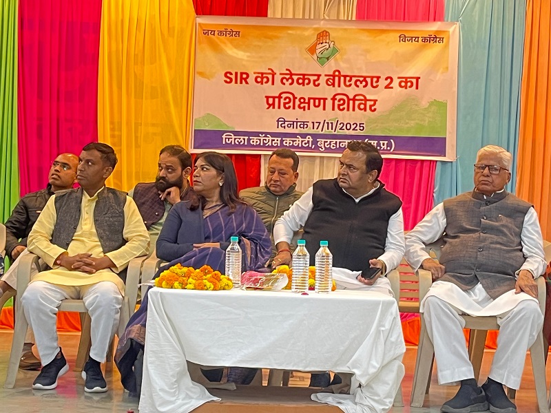बुरहानपुर(डिजिटल डेस्क)। जिला कांग्रेस कमेटी बुरहानपुर (शहर) द्वारा स्थानीय राजस्थानी भवन में SIR (Special Intensive Revision) प्रक्रिया को लेकर प्रशिक्षण कार्यक्रम आयोजित किया गया। जिसमें शहर के सभी कांग्रेस के BLA एवं BLA-2 बड़ी संख्या में उपस्थित हुए। कार्यक्रम का उद्देश्य कार्यकर्ताओं को मतदाता सूची पुनरीक्षण प्रक्रिया की संपूर्ण जानकारी देना और SIR कार्यप्रणाली को ज़मीनी स्तर तक मजबूत करना था।