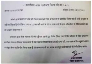 ममलेश्वर लोक प्रोजेक्ट निरस्त करने को लेकर प्रशासन के आदेश की कॉपी।