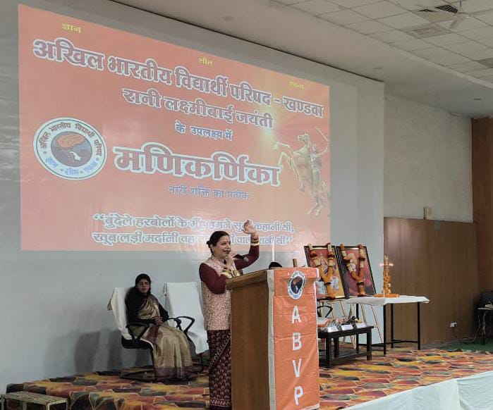 खंडवा(अनवर मंसूरी)। अखिल भारतीय विद्यार्थी परिषद खंडवा नगर मंत्री दीपांशु पटेल ने बताया कि रानी लक्ष्मीबाई जयंती के उपलक्ष्य में विशेष व्याख्यान कार्यक्रम ‘मणिकार्णिका’ का आयोजन स्व नंदकुमार सिंह चौहान शासकीय चिकित्सा महाविद्यालय सभागृह में किया गया जिसमें मुख्य अतिथि के रूप में यूपीएससी टॉपर एवं खंडवा जिले की अपर कलेक्टर सृष्टि देशमुख, मुख्य वक्ता के रूप में इंदौर से पधारी डॉ माला सिंह ठाकुर विशिष्ट अतिथि मेडिकल कॉलेज के अधिष्ठाता डॉ संजय कुमार दादू एवं कार्यक्रम की अध्यक्षता शिक्षाविद अजय सिंह राजपूत एवं अभाविप की विभाग छात्रा प्रमुख ज्योति यादव ने दीप प्रज्ज्वलित कर कार्यक्रम का विधिवत शुभारंभ किया।