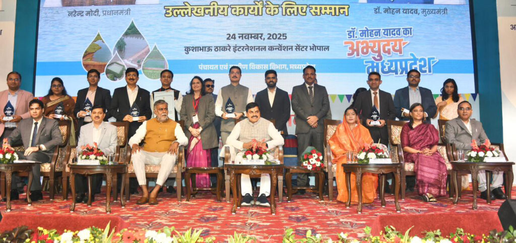 भोपाल में मिला खंडवा को जल संरक्षण अवार्ड: मंत्री विजय शाह के उपाध्यक्ष पुत्र मंच पर पहुंचे
