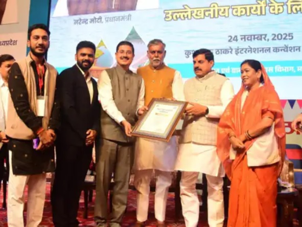 भोपाल में मिला खंडवा को जल संरक्षण अवार्ड: मंत्री विजय शाह के उपाध्यक्ष पुत्र मंच पर पहुंचे